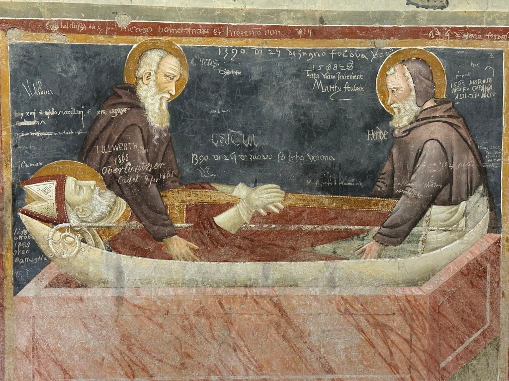 It is said that graffiti is one of the biggest blights of our time. But when does graffiti become historically important? Some of the scratches on this fresco in the San Zeno Basilica in Verona are dated back to 1390.