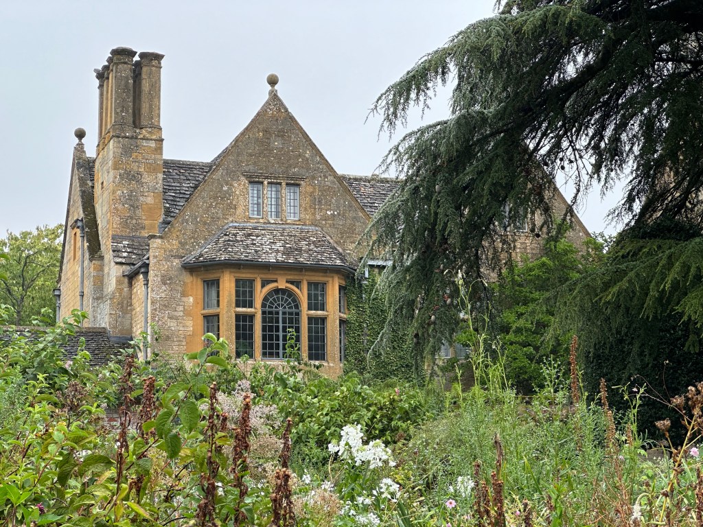 The house rises, stone upon stone, each block holding in its grey solidity a murmur of centuries. The air about it trembles faintly, as if the trees leaned in to listen to some secret spoken only once, long ago. Those windows, narrow and darkened by iron lattice, gaze not outward but inward, to a chamber of shadows, where footsteps must echo on worn floors and silence grows thick in the corners. The roof slants sharply, a triangle against the pale sky, its ridges like the folds of some vast, old cloak. Time presses against these walls, not with violence but with persistence, like rain, like breath, like the quiet wearing-down of all things. And yet, there is a steadfastness here, a defiance too: red stone warming where sunlight touches it, the archway holding fast against the encroaching years. One imagines voices—low, thoughtful voices—rising in these rooms, lives passing across the mullioned glass in fleeting patterns, gone as quickly as cloud-shadow on the lawn. The house, in its stillness, gathers these remnants, keeps them, turns them into silence. And so it endures: not merely a dwelling of stone, but a vessel of memory, layered, waiting, watching, refusing to be forgotten.